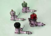 But before doing so, it's worth summarizing the common points shared by all variants. Bore and stroke remained constant throughout at 17.46 mm (0.687 in) and 14.29 mm (0.562 in) respectively for a displacement of 3.42 cc (0.209 cuin). These were unusually over-square dimensions by contemporary standards. Weight also remained essentially constant at around 114 gm (just over 4 ounces).