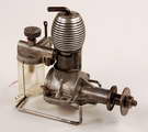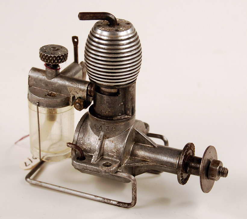 I’ve run the example illustrated, and can confirm that it starts and runs very well indeed. It has been used but remains in near-perfect mechanical condition. An 8x4 prop seems to suit it just fine, and it turns an 8x4 Taipan glass-fibre nylon prop at a steady 6,300 rpm on the bench. The 9x4 recommended by the makers would have over-propped it unless a very "fast" prop was used. I can also confirm Sparey’s comment about the fuel tank head issue—to run the tank out at the same setting, you have to set the engine so that it runs at minimum lean near the end of the run, which means that the first part of the run is inevitably slightly rich. But this would be of little practical consequence in the kind of situation (small sport free-flight models) in which this engine would have generally been used. Furthermore, the tank simply screws into the metal tank top, and is thus easily removed if desired to allow the use of a separate tank. I’m very fortunate that my example still has its original tank!