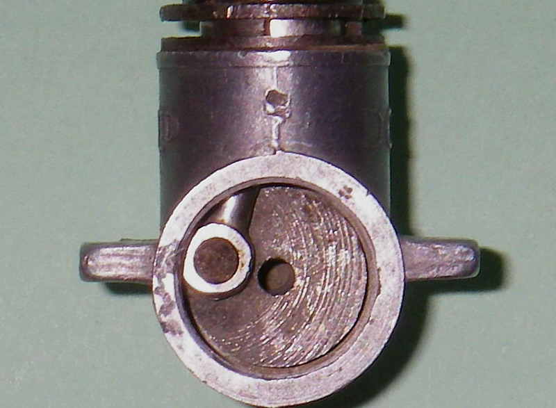 Apart from the use of sawn slots instead of drilled holes for the actual transfer ports, the bypass arrangements actually owed much to the earlier OK engines from the USA and were essentially identical to those used on the contemporary Wen-Mac and AM .049 models. An unthreaded internal portion of the upper crankcase boss combined with a similarly unthreaded portion of the outer cylinder wall to form in effect a 360 degree unthreaded annular passage around the cylinder at transfer port level. This annular volume was fed from the lower crankcase by two milled bypass passages, one on each side, which interrupted the female threads into which the cylinder screwed.