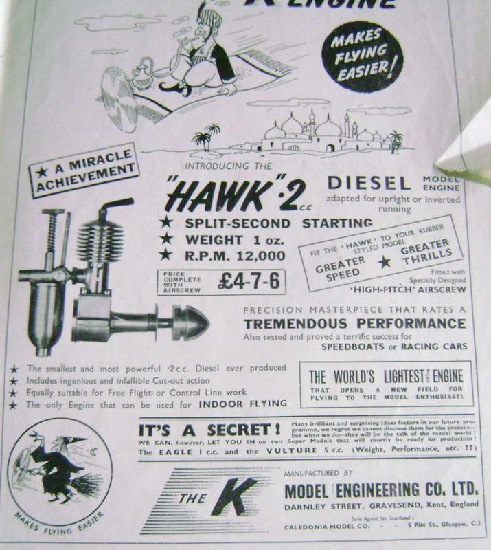 The makers of the Kemp (later "K") engines were among the most successful and prolific manufacturers of sub-miniature diesels in the early post-war period. Their various Hawk models were reportedly in great demand for several years, consequently being produced in relatively substantial numbers. This has had the happy result of ensuring that a fair number of them still exist today and they remain probably the best-known of the early British sub-miniatures. In this article we'll attempt to sort out the various forms in which this fine little motor appeared.