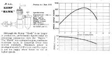 A test by Charlie Bruce of a Mk I Series II Hawk which he had owned from new appeared in issue no. 59 of "SAM Speaks", the newsletter of the Society of Antique Modellers, for January/February 2003. This was mainly concerned with the engine's dismantling and reassembly, but a few test figures were included. Using a standard diesel fuel, Bruce obtained 6,900 rpm on a Tornado 5 ½ x 3 nylon prop, and 8,300 rpm with the 5 inch diameter laminated airscrew supplied with the engine. It seems that the laminated wooden prop was well matched to the engine's power curve.