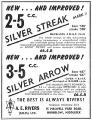 Peter Chinn's "Latest Engine News" article in the June 1960 issue of Model Aircraft included the announcement that the previously-reported revisions to both the Silver Streak and Silver Arrow were then being implemented, with the Silver Arrow being the first of the two models to appear in upgraded form. Emphasis was placed both upon the increase in shaft journal diameter and the change from an externally-threaded front extension for the prop to an internally-threaded shaft with prop bolt. The initial advertisement for the upgraded models appeared in the July 1960 issue of Aeromodeller. Both models were offered at an unchanged price of £6 5s 8d (£6.28).