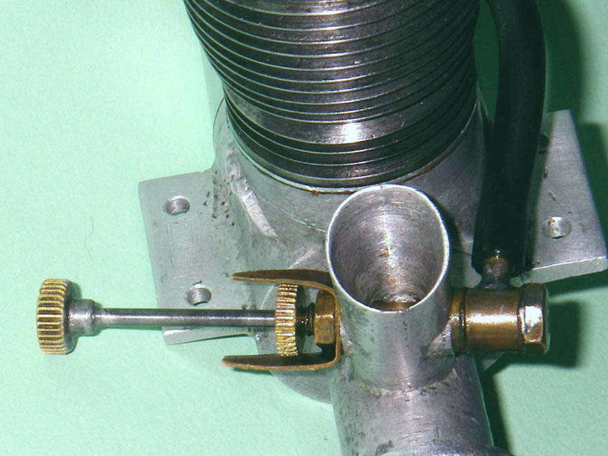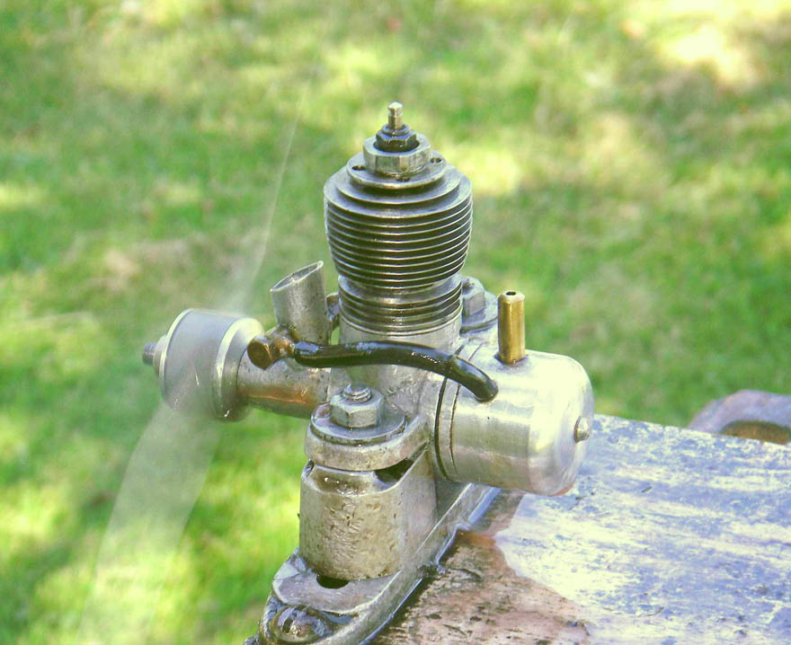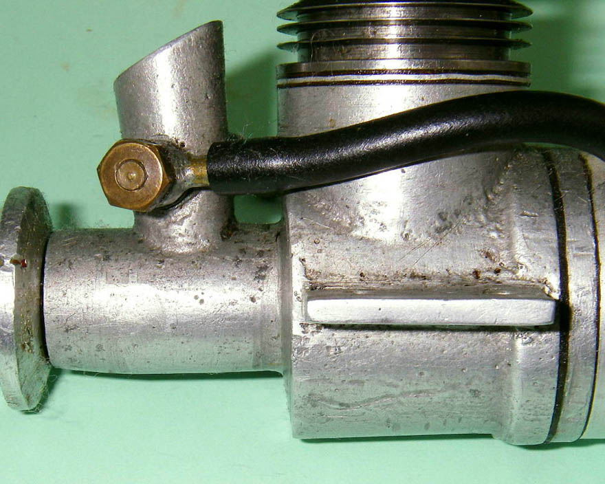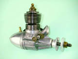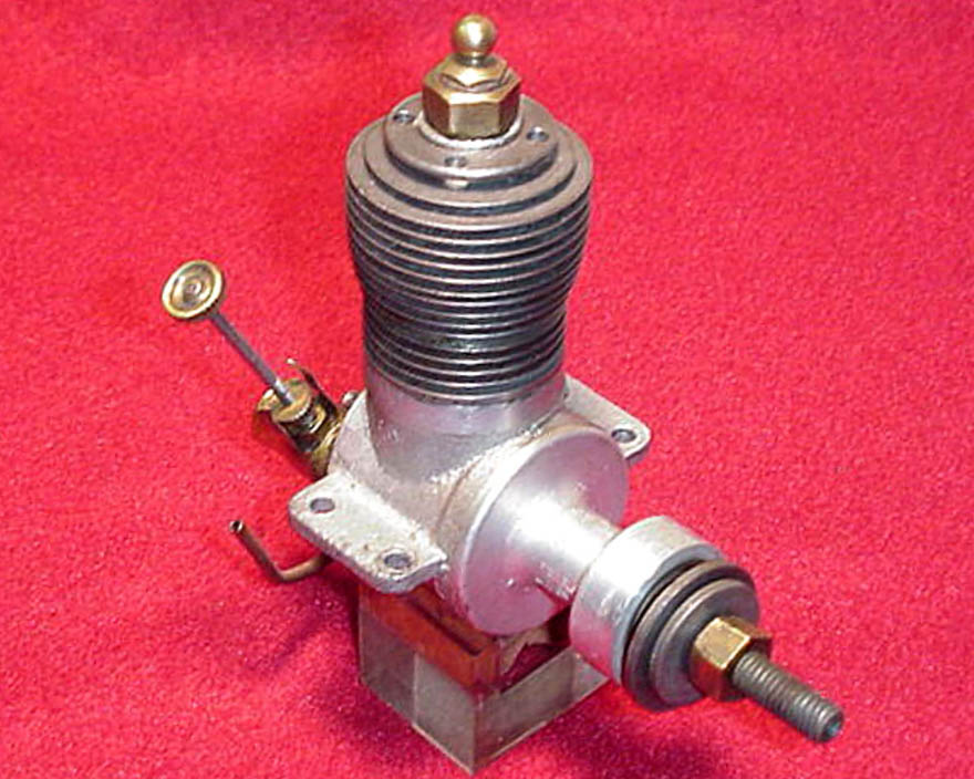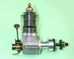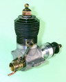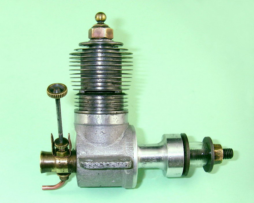 The engine which forms the subject of this article is a very simple and lightweight 4.96 cc (.303 cu. in.) crankshaft front rotary valve (FRV) radially-ported glow-plug motor having a number of distinctive features. For one thing, it has a steel cylinder having a blind bore allied to thin integrally-machined cooling fins. For another, it sports a 3/8-24 glow-plug, a fitting which was abandoned fairly early on in the glow-plug era in favour of the familiar 1/4-32 item.