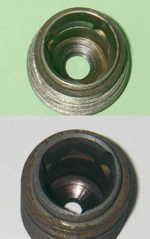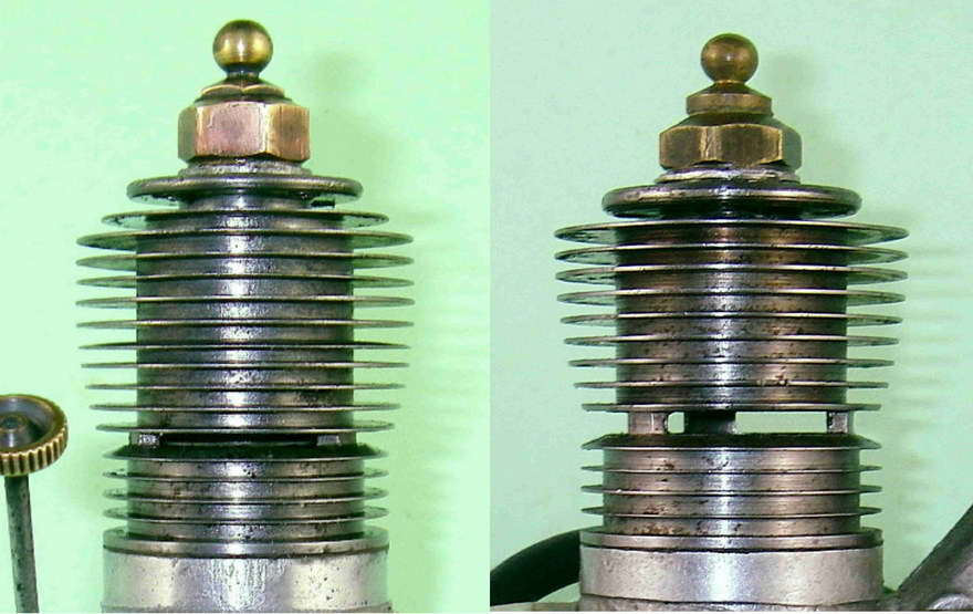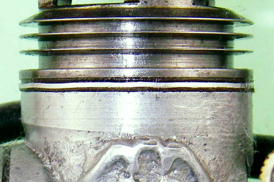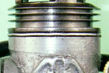 There's no question that the spacer is an original feature—in its absence, the transfer ports on this example don't even open! Moreover, the compression ratio would become unacceptably high for an engine of this type. A somewhat parallel arrangement was used by Hope for the head seal featured in their very rare Super 60 model, of which more elsewhere. We shall recall this fact later.