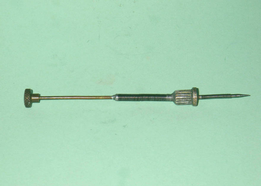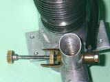 As received, the engine had a long flexible extension on the needle. This appeared to me to be an owner modification since the serrated brass disc which engages with the spring clip had a separate thimble of steel soldered onto its outer face to make the connection with what appeared to be a standard universal flexible extension. It seemed unlikely that any manufacturer would adopt such unnecessarily complex construction for a simple component like a needle, particularly a Japanese manufacturer at a time when minimalism was the guiding principle in engineering design. It appeared far more likely to me that someone had grafted a standard universal needle extension onto the original needle, a view which has been confirmed by later evidence (see below). The rigid needle in the illustrations is of my own manufacture, although I have naturally retained the previous fitting just in case it does turn out to be original.