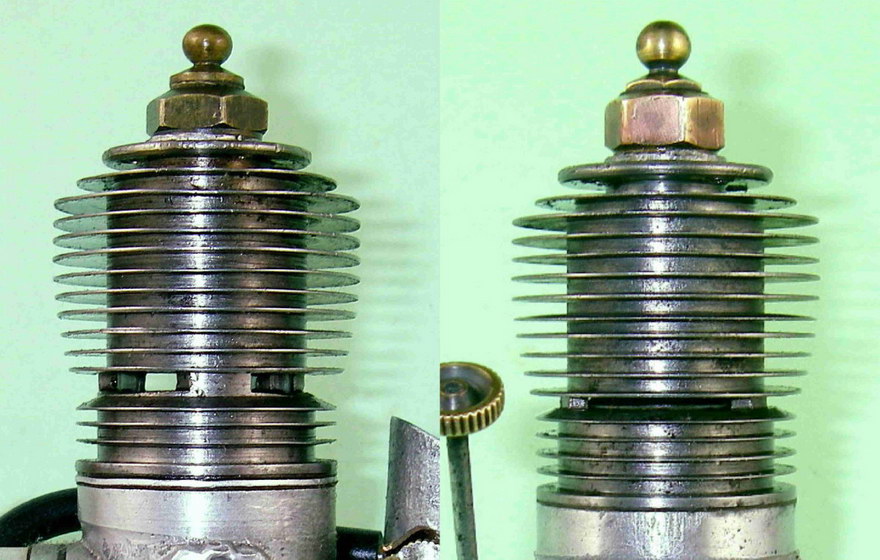 With the caveat that none of this can be proved at the present time, here's my working hypothesis. My present suspicion is that the unknown engine was the product of someone—perhaps a former associate of the Hope manufacturers—who looked at the Hope B and thought that he could do better. The main changes that he clearly saw as being desirable were the adoption of short-stroke internal geometry to facilitate the attainment of higher speeds along with some improvements in the general styling of the engine. But he saw no need to beef up the engineering design, remaining in the minimalist design camp. He also retained the 3/8" plug which was used in the earlier Hope B glow-plug models.