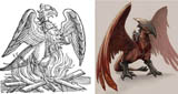 A very suitable name for a model aero engine, in fact, particularly in Asia where the legend of the roc was well established and where names drawn from the metaphysical were very common! The attached artistic impressions of the roc certainly bear direct comparison with the emblem on the engine under discussion. So we have an emblem and a name that is logically and culturally consistent with that emblem and is moreover attested in the literature of Japanese model engine production.
