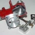 With the basic design for the Red Rover worked out, Bert handed the rough plans to Roger Schroeder for pattern making and foundry work on a special backplate. Using no science at all, Roger and I decided that it would "look" better if the venturi slanted back a bit more -- with the extra clearance from the head, finger choking for priming becomes a bit easier. Even though Roger had decided not to make a standard AHC, the temptation to machine one of his castings was too great. The result seen here is the second prototype completed by Roger on 2001-05-20 with his sandcast backplate.