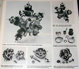 What is unusual about this design (which was subject of a patent application) is the low pressure in the crankcase, which is actually vented to the atmosphere between the lower two cylinders. According to Lee, the mixture is distributed to the cylinders by the design of his master rod assembly that provides a "sweeping" action. Don't see it myself, but you can't argue with success. The design appears to utilize fork type big-ends on the articulated rods. Strange as this all may seem, it works, and an unknown number of engines were sold at $1,195 each. It should be obvious that hand starting such an engine would not be practical as the blower and presumably, the master rod assembly need to be spinning at a fair clip in order to do their job.