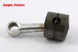The rod is a "dog-bone" type, turned from aluminium alloy, and fitted with a fully-floating wrist (or gudgeon) pin of 1/8" diameter. The ends are rounded and as the port slits are small in comparison, no great danger exists that a jam might occur. In contrast, the Snipe's piston (shown here) was grooved for a thin wire pin-retaining circlip as there was an almost certainty of a floating pin jamming in the internal transfer flutes. Motor Boy Dave Owen has convinced me that this is a bad idea on engines where the transfer ports overlap the exhaust. The reason being that as the piston descends, and well before the exhaust opens, the circlip groove will briefly connect transfer and exhaust ports. During this period, the crankcase is open to the atmosphere and it is possible for higher than atmospheric crankcase pressure (and the new charge) to vent via the exhaust. The duration will be small, and obviously such engines run, but it's something to consider, especially from a designer who had made such a big thing about retaining crankcase compression through close shaft bushes. One Taipan also used the circlip wrist-pin retainer idea. Other designers have used a press fit pin, although these tend to distort the piston requiring extra running-in and making disassembly and re-insertion uncertain. The Pepperells came up with an innovative and unique solution: soft-solder it in!