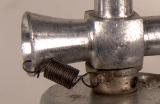 Although he gets the introduction date for the original wrong, Richmond's review notes the replicas by Doonside and Irvine, and makes a statement that I believe to be incorrect, saying: "There's a tiny hole drilled in the flared part of the intake tube, about .010 inch to prevent over-choking the resultant flooding." (no error; I quote verbatim). He adds that some Bantams and Fosters had this feature too [3]. Sorry Stu, your NNIB S75 is missing the bias spring of the cut-out, perhaps because an earlier owner wanted to disable it from the at-rest, activated position. The hole is the aft anchor point for the spring (see photo at the top of the page).