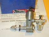 The engine weighed a mere 1-3/4 ounces bare, with a bore of 0.330", and a stroke of 0.520". This classifies it as a long-stroke, side-port design. Using those figures, my HP calculator says that the capacity is 0.04447 etc cuin, or 0.729cc, close enough. Various engine reviews are able to agree on the bore and stroke, while arguing about the displacement—probably meaning their micrometers were similar, but the length of the slide rules used to do the math differed. In comparison, this is the same weight as a Cox Baby-Bee of 0.0494 cuin. Not bad for a compression ignition engine, and just try to spin a 9" prop with a Baby-Bee!