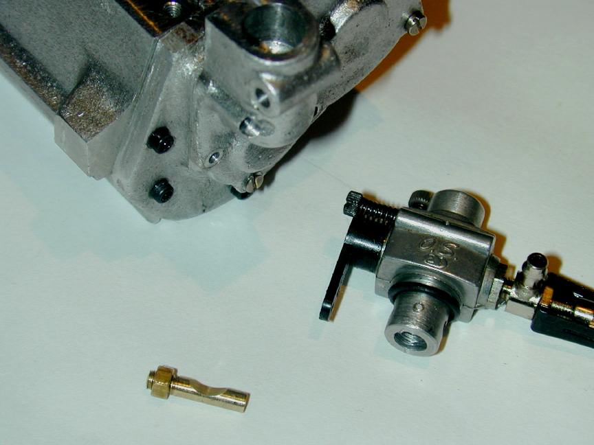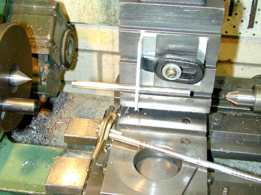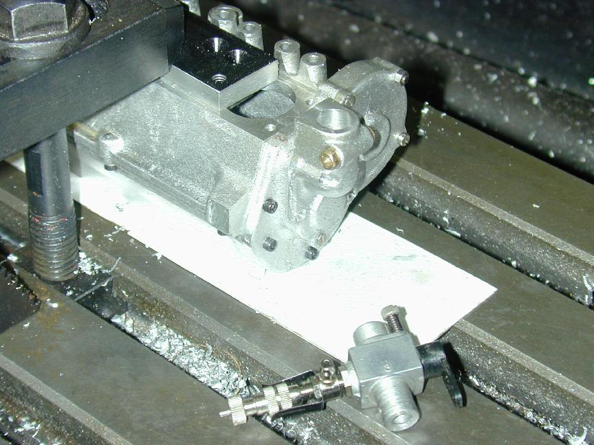 The brass lock pin that retains the carburettor (Photo #5) was first turned with a flange as seen in Photo #3. This enabled it to be clamped up tight while the carby bore was drilled (Photo #4), thus forming the concave locking cut-out. The flange was then turned away. All this is a standard locking pin fabrication trick described by George H Thomas in his dividing and graduating book (reprints of Model Engineer articles from the late 1970's). I find time and again that study of non engine-making techniques can be applied to otherwise tricky problems, and that's part of the enjoyment of this hobby.