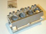 Photo #2 shows the jig used to drill the front and rear cover attach holes, and the camshaft bearing holes. The use of this jig to achieve perfect alignment for the camshaft was described by Eric Whittle in his construction article for the Cirrus in SIC. I'm happy to say it worked exactly as advertised—somewhat to my surprise. The two pot chucks next to the jig were used to hold the large, brass timing gear for facing, contouring, and key-way cutting.
