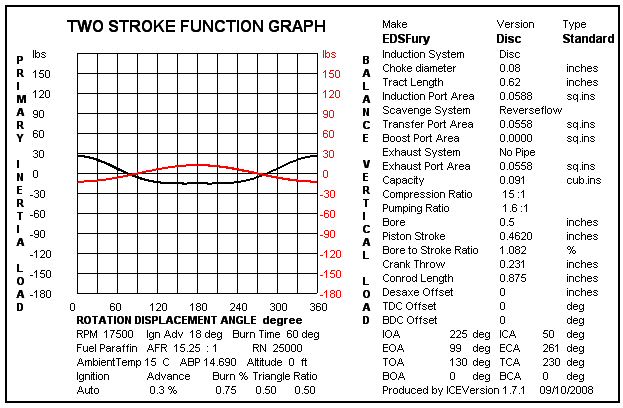 These BHP figures are slightly higher than earlier predictions due to different test settings. However it does indicate why it can be difficult to determine if there is any significant increase in BHP at the piston speeds involved. The graph showing the difference in vertical loadings is for the highest balance factor of 60% which is very difficult to achieve in a small capacity engine. The Ice program does not calculate any change due to gas turbulence or pumping ratio. This indicates the importance of minimizing the reciprocating mass as found in my tests back in 1959. What could prove beneficial is to balance the weight of the crankpin only so that the shaft is balanced (this may improve the life of the crankshaft bearings).