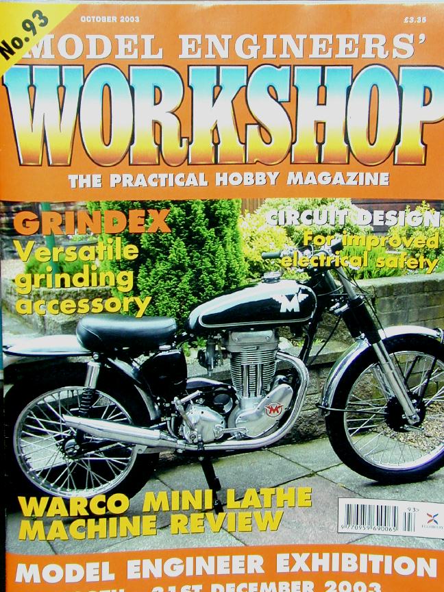 Another Model Engineers Workshop arrived this month which was a bit of a surprise since they publish on a two-month schedule and I also got one last month. Not much in it for model engine builders, although the trade information page did note that the change of hands at Hemingway is now complete and the operation has been re-vitalized by the new owners. The link address has not changed, but the look and feel of the site has, so it's worth a revisit (even if some damn glitzy web scripting-thinggy caused my pointer to shimmy like your sister Kate until I killed the browser instance). Mention of MEW #93 causes me to recall #92 reported on here last month, which contained an article that provides an ideal segue into..