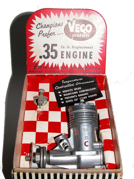 Here's one to set all collectors' hearts a-flutter: A rare, new-in-box VECO 35C Combat engine—so rare, I'd never heard of it. That may be because, as the lucky new owner relates, the maroon "C" on the side of the bypass was stamped in an ink or paint that washed off as soon as it got a wiff of fuel—probably high nito to boot, given the application—making it look like a much more mundane VECO. As can be seen here, the engine is about as pristine as it's possible to get, considering its age. The fuzz that's grown on the (cad plated?) needle valve adds to the authenticity. Finds like this are rare, but they are out there.