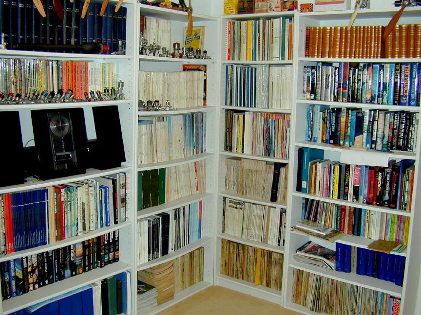 Another long-term project I've had the honor to have contributed to is also drawing to a conclusion; specifically the Vance Integral Edition (half of which graces the top shelf on the right in the library picture below). This labor of love has seen the collection, digitization, sanitization, and re-publication of author Jack Vance's entire oeuvre. I fully expect at least one PhD to be awarded not to our effort, but to someone who analyses the saga, which is an entirely new accomplishment made possible by the Internet. I'd seriously think about it myself if it (1) wasn't so far outside my field, and (2) I was not so burnt out by my comparatively small part in the adventure. Still, it is an accomplishment, and an excuse!