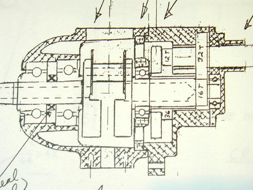 This one is made exactly to the plans, which are as close to the original as makes no difference. Ken made some very sensible changes, like reducing the shaft OD from a heroic 3/8" so he could fit a bronze bush (the original runs the shaft in the unbushed aluminum case casting), and using a split cone to grab the prop driver. Mine uses a squared section on the shaft to key a broached square hole in the driver. If you sit down with just a needle file for this job, it can be painful and unattractive, but there's an easy way that Roger Schroeder and I wrote up years back in SIC. When I build the second Pepp (which will go into my permanent-don't-even-ask collection), I'll document the build photographically, including how to broach square holes with no fuss, no mess, no complicated tooling, and no 20 tonne hydraulic press! Sounds like a good Tech Tip Topic...