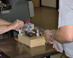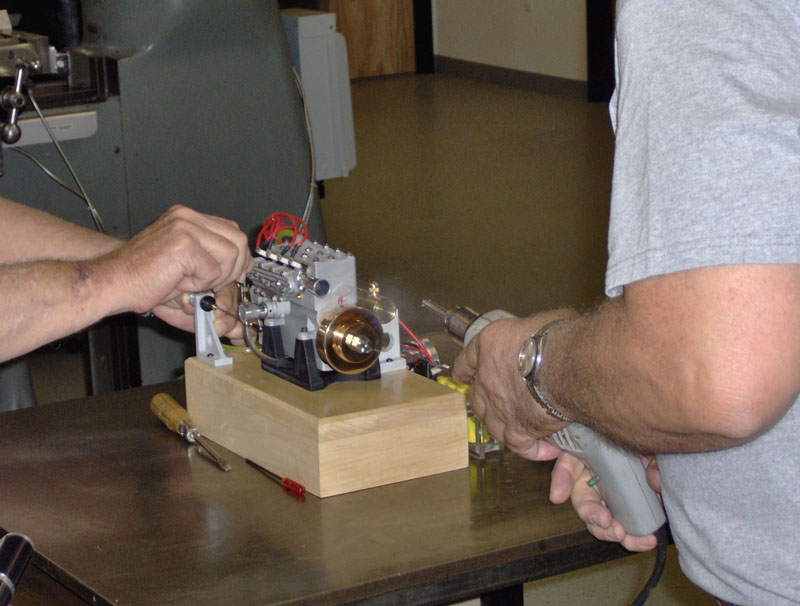 At 10 AM Eastern Pacific Time (UTC-7) on Saturday, July 22nd, Joe Martin of the Craftsmanship Museum and President of Sherline Products Inc made good on his rash promise that the first attempt to start the museum's collaborative ETW Seal project would be conducted over a live web-cast. As this engine contains pistons and rings made by me, I was a bit nervous about the outcome, so set the alarm to get out of a warm bed on a cold Sunday morning at 3 AM Brisbane time (UTC+10) to watch. The finished engine is a credit to all concerned, especially those responsible for the outer physical appearance. I just love the attention to the little details like the color contrast on the engine mount, the spring loaded throttle with an idle adjust collar, and the little red cable tie that keeps the red ignition leads together (small things, etc).