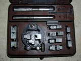 The little hand-held Delapena external hone is an indispensible tool for piston and crankshaft finishing. Sadly, the original product has not been available for many, many years and it is even a rare event to see one crop up in the tooling section of eBay. This photo shows what you got for not a lot of money back in the 50's: a set of guides with matching stone holders to cover a range of external diameters ideally suited to making small engines, a holder for the stones and guides, and some all-important "truing sticks" for the stones.