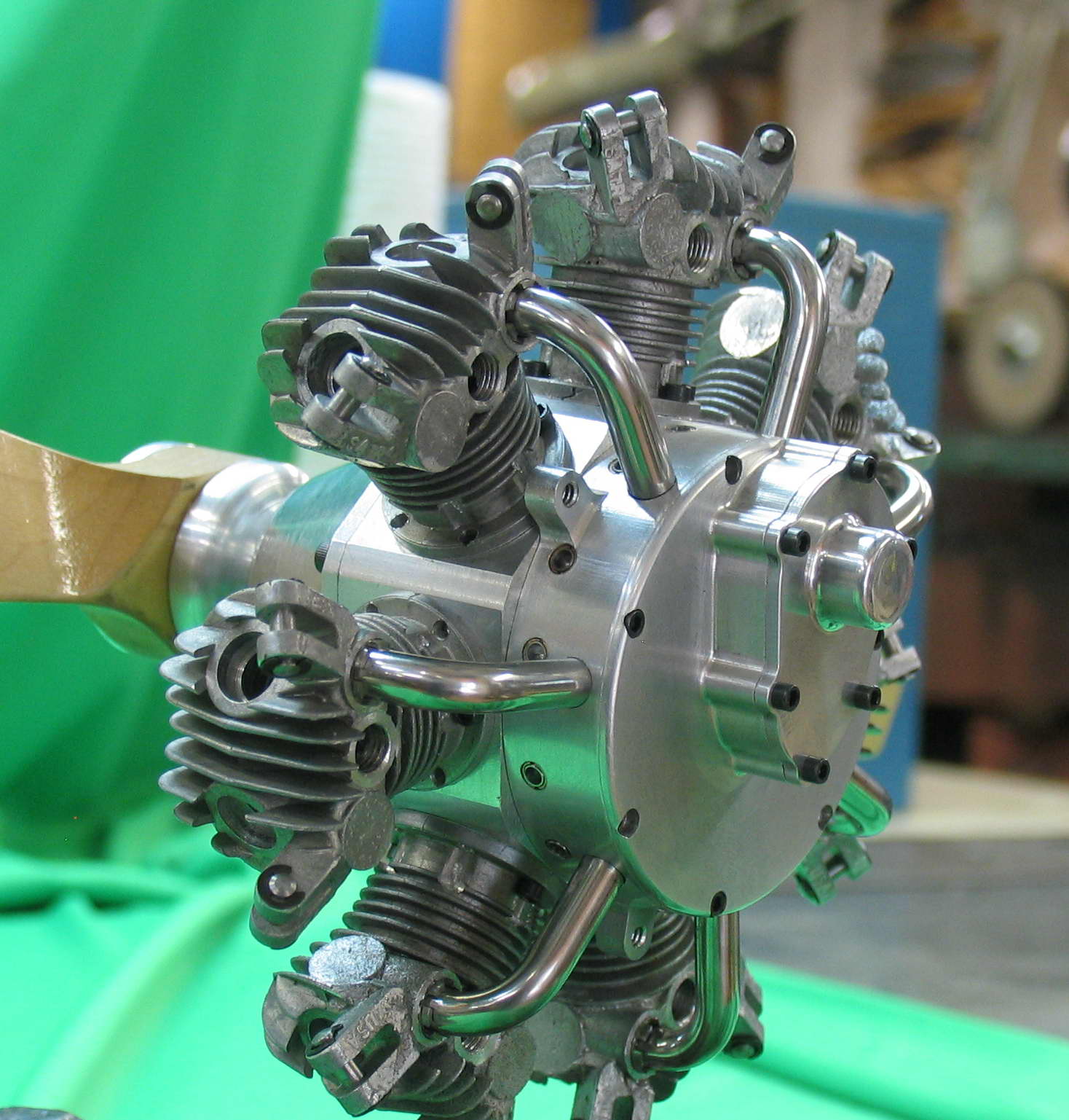 Rather than hide this one away in The Gallery, I thought it rated a news entry all of its own. The subject is Otis Baker's rendition of the Super Morton M-7 radial, based on design work being done by Bruce Satra, and Bob Roach, with input from several others, including Otis himself (he's just uncovered a slight interference problem between the mounting lug behind the number seven pot and the inlet tube to that cylinder). As well as Otis' beautiful machining on the gearcase, take special note of Bruce's latest modification to the old Morton cylinder design: an extra pair of cast-in pads allow the builder to choose between rear or side entry pipework. The SM-7 uses the rear pads which allows the inlet pipes to be a simple "L" bend, secured with lovely, scale-like castle nuts. This is far superior to the pipe-benders' nightmare and wring-in fit required by the original. We should see this engine running real soon now.