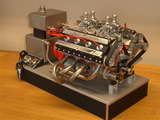 This DOHC 76cc V8 was built by Rolf Luther and was aquired by Mark Thomas for a simple King's Ransom. Now apart from the fabulous workmanship, look at the little things, like the way the exhaust headers are of equal length and curl around each other to join up—now figure out how you would approach that job, then consider that this is only a small aspect of the overall engine. |