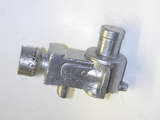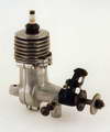 This 5cc side-port diesel is the work of Tasmanian builder, Tony Gray. Tony likes big, old R/C models so he developed the engine to turn a correspondingly big prop, be easy starting, docile, and inexpensive. The forward located exhaust "T" allows the oily diesel exhaust to be easily pipes away from the airframe and the rear mounted throttle simplifies the linkage hookup. I like the practical prop retention screw too. Tony does his own castings in aluminium dies using recycled automotive parts (helps to own a motor garage and wrecking yard!) |