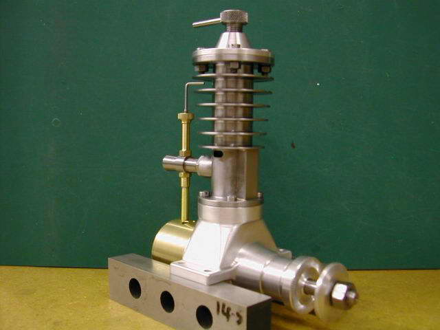 The Weaver was a Joy to build. The drawings were perfect. The only areas that were a bit challenging for me were as follows. The transfer belt height is very critical. I ended up making a tool to plunge the .030 depth. My first attempt resulted in too low of height at the top of the 45 deg. angle making the transfer duration only about 60 deg. I then went back in with my my tool and raised the to edge about .010. This worked great. As you know the distance from the top of the transfer belt to the bottom of the exhaust ports is very small ( .028 if I recall ) The other area that was a learning experience was the soldering of the inlet fitting. After some experimenting I found that using flux with solder in it worked well. You just dab it on were you want the solder and then heat the whole assembly up until it flows. I had no other problems and I really love the design. Starting was no problem. while holding the engine in my hand I could make it fire on a prime through the exhaust ports. I then mounted the engine on a test stand, filled the tank, opened the needle about 1 1/2 turns, choked it one flip. The engine started on the fourth flip. I leaned it out a bit and adjusted the compression for a steady run and measured the rpm at 6800 on a 8x4 prop. Now that it is broken in and adjusted, it will start with just a few flips. I could not be happier with this engine. Thanks for your contribution to this great hobby. |