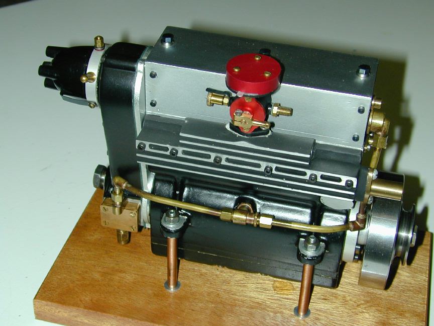 Mr Russel Watson-Will of Fig Tree Pocket, Brisbane, Australia, is a long time modeller and craftsman. Like most model engine builders, he is self-taught and modestly puts the quality of his work down to having been at it a while . Russ generously made his Opposed Twin Cylinder Diesel, which incorporates the best ideas he found in other engines, available for inclusion in the Motor Boys Plan Book. This page is dedicated to Russ for the invaluable help and encouragement he gave me when I started out in this madness, together with his generosity for making his priceless labrary available to me over the years.