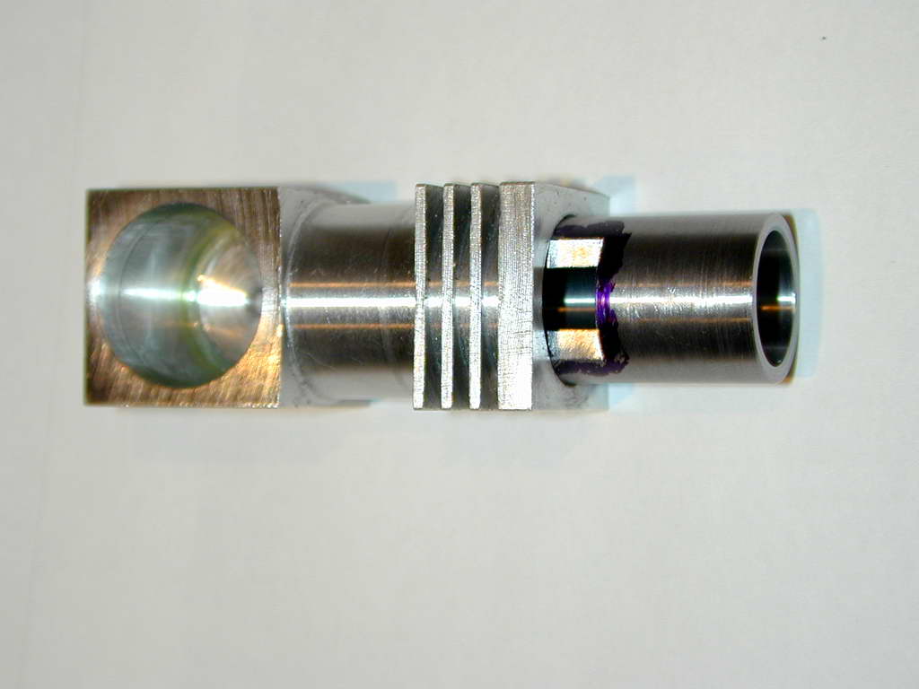 - The hole for the inlet tube is drilled on the 45° radial such that it is centered on a 5/16" pitch circle diameter (PCD). It's location will impact inlet timing, and move it too far out and the rotor won't seal it off correctly. The MAN instructions postponed this step until the rotor was available which is not a bad plan. The inlet is just a length of 5/32 brass tube, tapered to be a press fit in this hole. I used a 5/32" hand reamer to taper the hole and got a press fit so good, that I could not pull the tube out without fear of damage! So I made a feature of it and used the case with tube firmly inserted to align for drilling the spraybar hole.