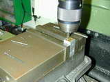 - This shot shows the holes for the mounting studs being drilled and tapped. The MAN plan calls for a 3-48 thread, but a 4-40 could be substituted. Just be careful not to drill too deep because you'd break into the case cavity and will probably loose primary compression around the thread.