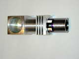 There's no photo for this, but we now have to drill and file a transverse slot for the conrod. This is time-consuming, tedious, and seriously not-fun, but we've got no choice. We can't drill through and still leave a "seat" for the liner as this would destroy the rotor seating face. Roger Schroeder and Tom Crompton side step this by making the rotor seat a separate part like the front bearing section. While it means tapping another four blind holes, it think it's a better design that easier to make and also allows the rotor seat face to be lapped. But if you are going to be a purist, out with the needle files and take care not to injure either of the turned bores while you are at it.