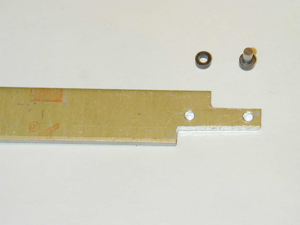 - Stage 2 is to roughly saw the blank to size (it's easier to hold a large blank than a small one for the drilling and reaming operation). As the rod shank is also 1/8" wide, the holes and a steel rule can be used to mark out the sides. To profile the ends, make a set of 5/32" diameter filling buttons from drill rod. These are just two sliced, drilled through 1/8", and fully hardened. A short pin aligns the buttons either side of the rod. Then some work woth needle files and a vice produces neatly finished ends.