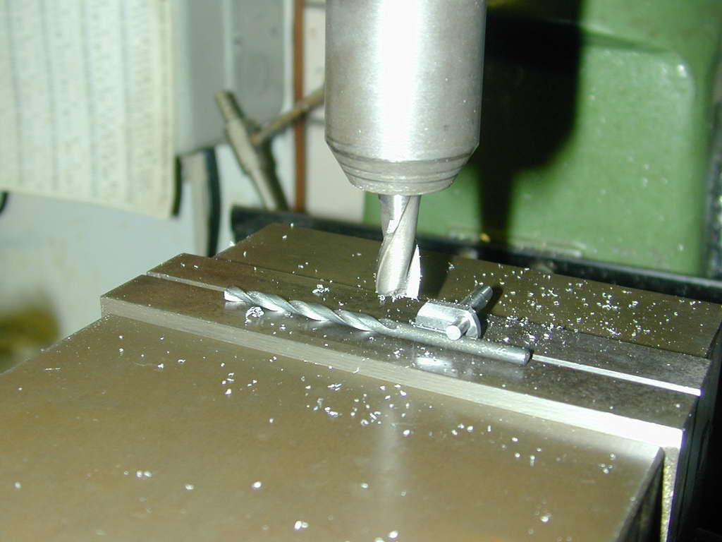 - The first and most important operation on the conrod is do drill and ream two 1/8" holes, the correct distance apart, and as perfectly parallel to each other as possible. After that, it's all file work. A good rule of thumb for reaming with Imperial reamers is to select a drill 1/64" smaller than the reamer to be used. The 2024 T3 bar was clamped under the mill/drill ensuring that the holes will be parallel. The mill X-axis can then be used to achieve the required between-centers distance.
