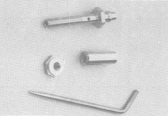 Centre 1/4" hex brass stock and extend 6mm from the jaws. Face end, centre-drill and drill with ascending drills to Ø2.6mm x 15mm deep.