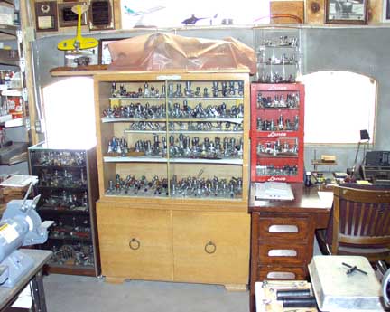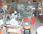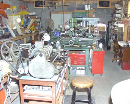 I thought you needed a little break from the pristine, scrubbed, well-organized shops you have been looking at - so here is where I lurk. This shop started as an old dirt floored tractor barn. My wife's father built it right after he returned from WW I. He served in France and was in the battle of Verdun, among others. This was the first rock structure he ever built. The walls have no footing and were simply laid on top of the ground. We have strong ground here, and the walls were in pretty good shape for having been erected in 1921. I had the arched doors rocked in on both ends of the building, raised the roof from it's original "shed"configuration and poured a concrete floor that is tied to the walls with rebar. It is climatized by a heat pump. Dimensions are 19' wide and 38' long. I have too much stuff in it, including about 2,000 model mags under the bench, two building tables, all my airplane stuff, all my engines two big lathes, a drill press, a mill, welding equipment, my computer and my ranch office. This is not to mention my model book collection, tons of hand tools, etc. Every day I find something new! The only real problem is the dust problem caused partly by the fact my two 90 lb. Labs sleep in the shop. You will see some of the dust in the attached pics. Why don't I dust it, he says? I did just a few days ago. My heavy tools, tractor, mowers, foundry stuff, etc, is in another building.