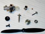 The PB .33 is a Schnurle port, front rotary valve induction, compression ignition engine of 0.33cc (.020 cuin) capacity. All steel parts are fully hardened steel and ground to very, very precise sizes. In a departure from the normal, the piston is hardened steel instead of the usual cast-iron. This "hard-on-hard" design means that the "pinch" of liner on piston at TDC is very light, so compression is achieved by grinding piston and liner to very precise size and a high degree of circularity. Does it work? Well the engines run, and run well and the piston and liner I examined felt silky smooth in operation and my fingers got sore pushing on the con-rod end holding the piston pressed against compression with no sign of the pressure leaking away. I wish I could say that of some of my own work.