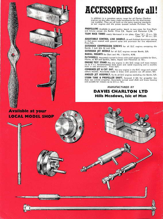 Meanwhile, Davies-Charlton maintained their prominent position in the British model engine industry in addition to continuing their contract precision engineering work for Rolls Royce, among others. In mid 1958 Hefin Davies decided that Davies-Charlton would re-enter the glow-plug field, and with this in mind he undertook an extensive tour of the USA to study American production methods. Since Davies-Charlton was not seen in America as a competitor, he was apparently welcomed by the manufacturers whom he visited. The fact that Davies took the time and spent the money to undertake this trip is another indication of the increasing importance of the company's model engine manufacturing activities.