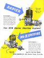 Production of the original 2.5 cc Rapier had been somewhat sporadic after 1959 and appears to have ended entirely when Davies-Charlton took over the manufacture of the Frog line on behalf of A. A. Hales. This was likely due to the fact that they were now manufacturing the Frog 249 BB for A. A. Hales, and the Frog was actually a superior engine in performance terms. Production capacity considerations doubtless underscored the undesirability of continuing to manufacture what were in effect two competing 2.5 cc models side by side. Happily, the Rapier was to gain a new lease on life in later years, as we shall see in due course.