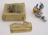 The engine came in a slightly tatty box, with a reprint of the L.H.Sparey Aeromodeller review. The review states that the contra-piston is a "special alloy". Well, it looks just like brass to me, and is quite soft. It appears to have been pressed from sheet about 1/32" thick, and is about 1/8" long. The fit was restored by gently expanding it a fraction, using a brass drift. There is now no leakage past it, it has the "correct" friction fit, and the engine ran very nicely yesterday.
