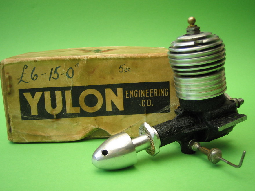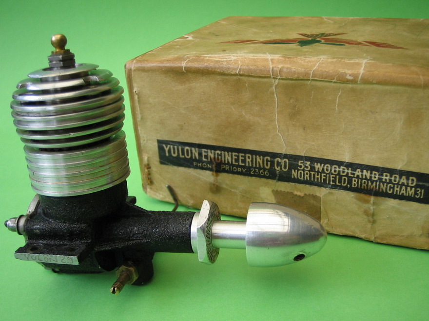 The British Yulon can be described in two words: desirable, and loud! According to Fisher, the first really good English glow engine was the original Yulon, produced by Messrs Yule and Long (you can see where the name came from), of Birmingham. It featured 360° porting achieved simply by drilling a series of tiny holes around the cylinder; one row for exhaust, another for transfer. As this arrangement means that the exhaust must fully open before transfer can start, it becomes necessary to open the exhaust early to get a reasonable transfer duration, contributing to a high exhaust velocity and hence the much beloved racket it produced. The crankcase on all but the last product, the Yulon Eagle, sported a distinctive black crackle finish, a good way to hide the raw casting finish, although that on the Yulon in the photos does no seem to be awful.