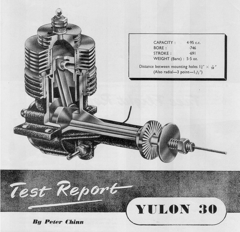 The Yulon is an unusual engine in many respects. Perhaps its most outstanding feature is the very light weight which has been achieved-only 51 ounces-for a swept volume of 5 C.c. This, combined with a high output, gives the Yulon an exceptional power-weight ratio, a quality which is, of course, highly desirable to meet modern ideas of stunt model design.