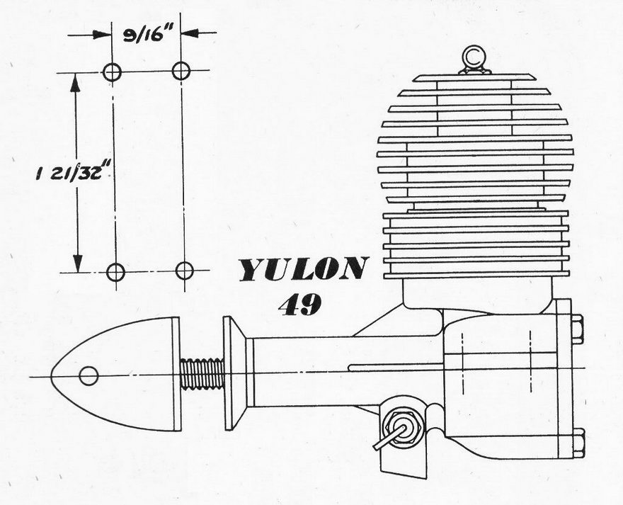 The Yulon did not remain in production very long, although they did produce enough models and marks during that time to make collecting a full set quite a task. Starting with the .30, which featured the distinctive layer cake head, they added a .29 and a .49, the latter being a scaled up .29. The last Yulon, the "Eagle" abandoned the drilled ports (which made quite a sight on dusk, so I'm told) for more conventional slit ports and for the first time, a round rather than hex stock prop driver. All featured "up-draft" FRV inlet porting.