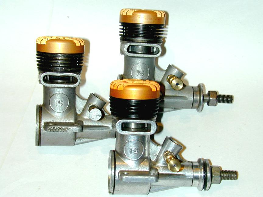 Anodizing (see anodizing). Early Glow Chief engines had gold anodized heads, Later ones were plain. Strictly speaking, the engine with the rectangular exhaust hole should have been left plain, but the others looked just so pritty...
