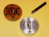 Last operation for this setup is drill #2 for a depth just greater than the finished length, counter bore with a 1/2" slot drill, and finally tap 1/4-32 (the standard glow-plug thread). We also take the opportunity to give the head a good polish with "Braso" or something similar at this stage. An anodized finish will reflect, if you'll pardon the pun, the finish of the aluminum. Come to think of it, Glow Chief were all a bit dull, so maybe I should have left the head "as cut".