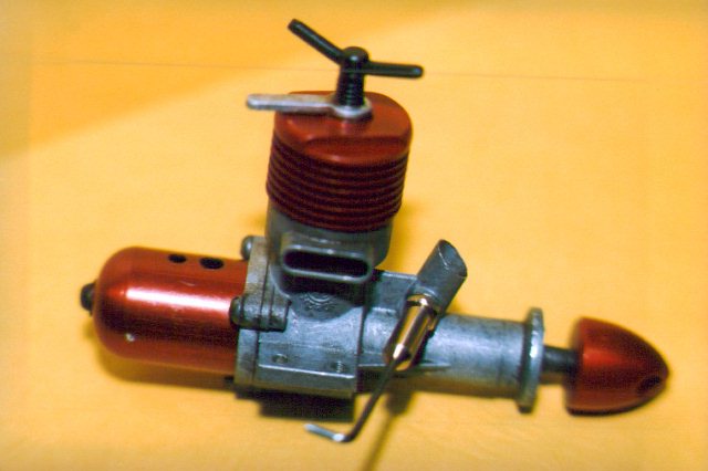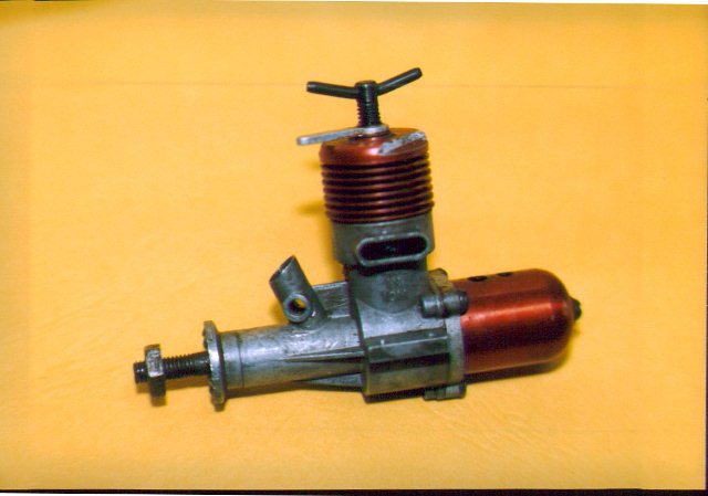 The Heron, again owned by good friend and partner in all manner of crimes, Van Richards-Smith. It received the obligatory red anodizing treatment and an ultra-sonic cleaning. It also needed a complete needle valve and spray-bar assembly (NVA), the making of which is delt with in great and boring detail in the November 2004 Model Engine News Technical Tip. The NVA described in that article, and seen here in the "after" shot, is derived from 3-view drawings in Aeromodeller and Model Aircraft. Clanford's A-Z reference seems to show something like this, but it's hard to tell. Van had another Heron, but he says the NVA in it is from his Taifun, and the one in the Taifun is from... (?