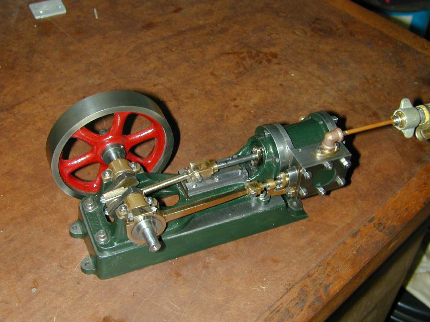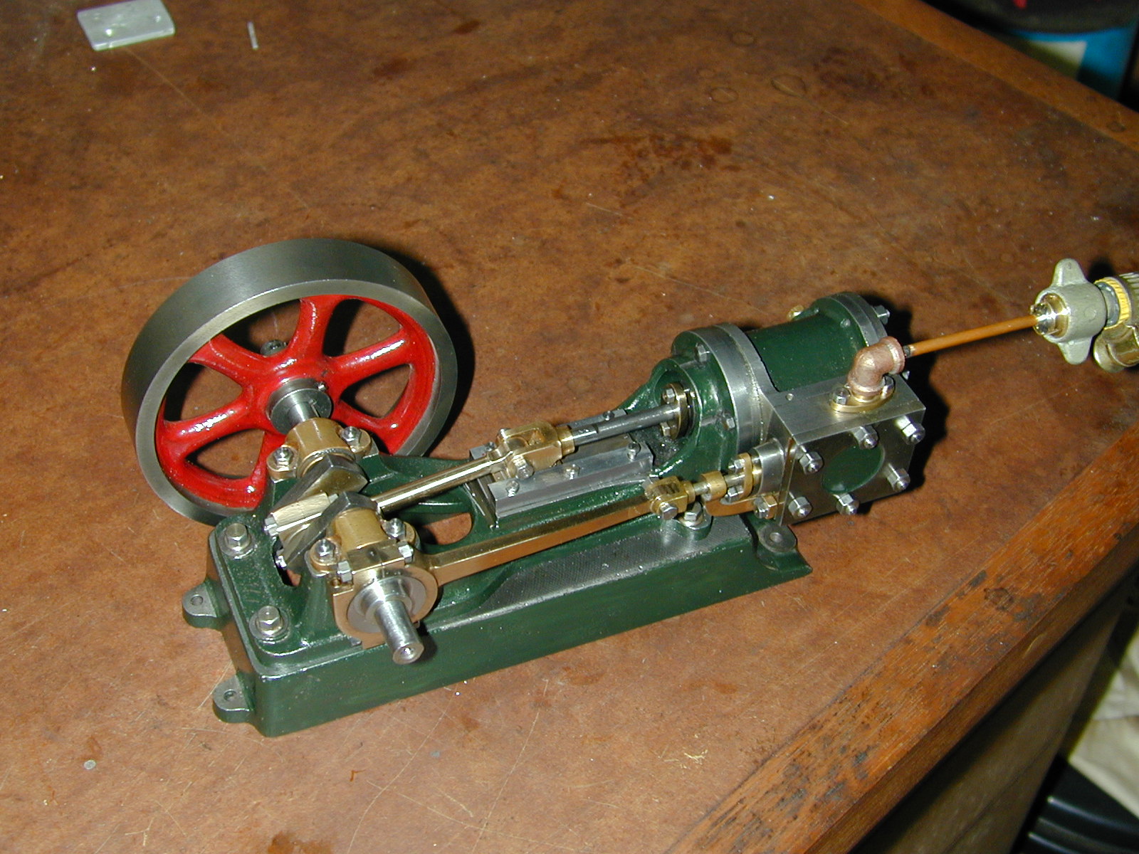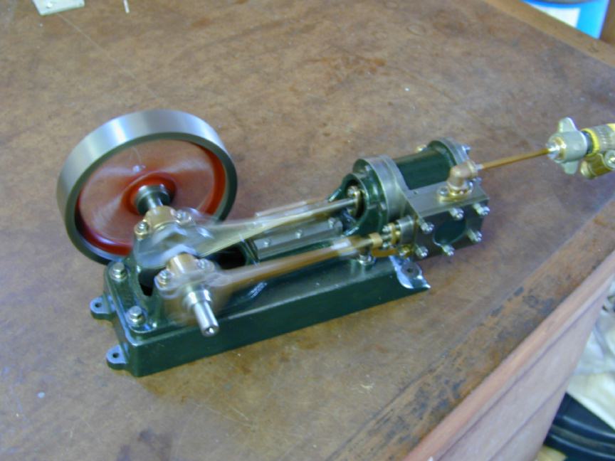 No, I've not gone over to the dark side, I've merely paid a brief visit. These pictures were taken as "progress" shots for the owner and show two steam engines I made in return for some IC engine castings. The horizontal "mill" type engine is a Stuart #8, 1" bore and stroke. It was mostly finished by someone else. I made the rods, crosshead and guides and ecentric. The vertical marine plant is a Stuart #7A. This I made from the raw castings kit (I still don't believe how much effort went into the reversing gear!) Time to complete it to this stage totals about 120 hours. It also has a 1" bore and stroke. While both engines are listed in the current Stuart catalog, their web site suggests they no longer supply these engines. Pity. I think their next size up is too big and their next size down, the "10" series, looks too much like a model. Doubt I'll make any more, but these sure are nice to look at...