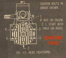 On this page you'll read a strategy for tightening the head bolts on model engines which have such things. It came about after I saw a diagram in a respected magazine suggesting a sequence for tightening the bolts on a typical six-bolt head. The sequence initially struck as wrong, until I realized they were talking about one style of engine, while I was thinking of another. But the unwary could apply one to the other and cause a distortion that the sequence was intended to prevent! Clearly what is required is that model engine owners understand the problem, then be able to work out the most appropriate sequence to avoid distortion, or poor seating.