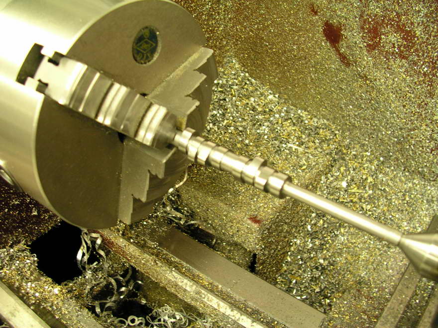 Continue cutting the second 180° swing. If you have created your table correctly, you will have a shaft with eight lobes, 90 percent done.